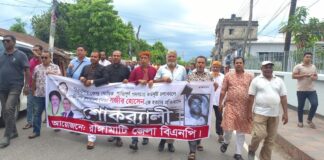 কৃষকদল নেতা হত্যার প্রতিবাদে রাঙামাটিতে বিএনপির শোকর্যালী