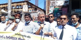 উপনিবার্চনে প্রহসন ও ভোট ডাকাতির প্রতিবাদে রাঙামাটি বিএনপির মানববন্ধন