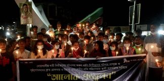 ধর্ষকদের শাস্তির দাবিতে রাঙামাটি ছাত্রলীগের আলোক প্রজ্জলন