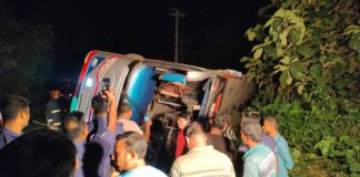 আলুটিলায় যাত্রীবাহি বাস উল্টে নিহত ১ আহত ২০